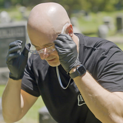 Before applying Headstone Helper PROSOCO ReVive, put on goggles and gloves (in the kit).