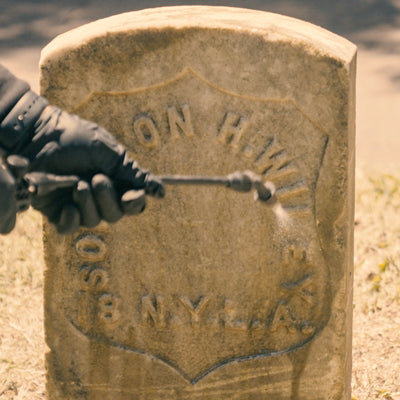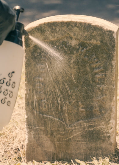Use the Headstone Helper bottle sprayer or Deluxe Sprayer to soak down the headstone.